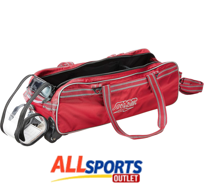The Storm Tournament 3 Ball Tote Roller in red provides convenient storage for your bowling equipment. With a spacious design and durable construction, it features a smooth-rolling tote for easy transport. Perfect for tournament bowlers, this bag ensures you can carry your balls and accessories with ease and style.