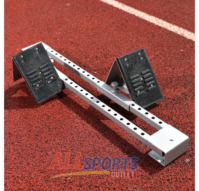 The Competition Track and Field Starting Blocks are designed for athletes aiming to improve their sprinting performance. These durable blocks provide excellent stability and grip on the track, ensuring powerful starts. Ideal for both training and competitive events, they are easy to adjust for personalized settings. Elevate your athletic performance with this essential gear from All Sports Outlet.