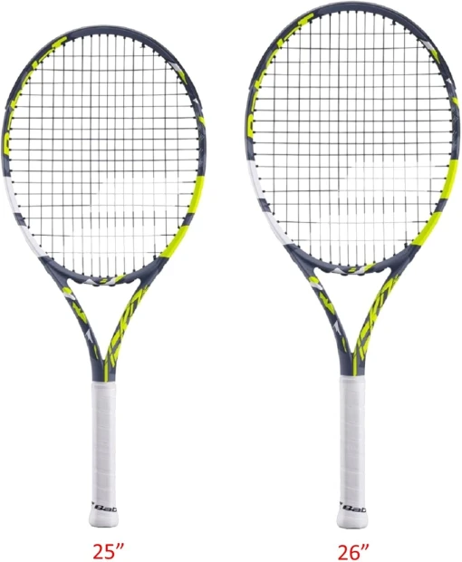 • This junior tennis starter kit includes 1 Babolat Aero Junior Tennis Racquet, available in 25″ or 26″ frame size, 1 3-Pack of Overgrips, and 3 Tennis Balls.