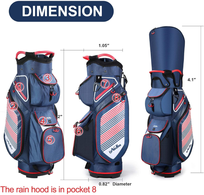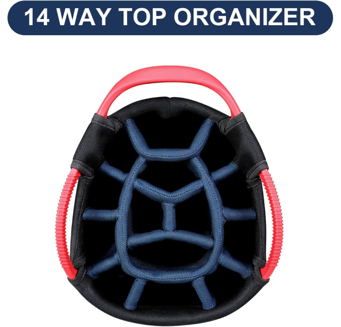 • 14-Way Organized Divided Top: This golf cart bag features a 14-way top, offering ample space to securely store and organize all your golf clubs. The 14-way divider ensures each club is protected, reducing the risk of damage and scratches during transport.