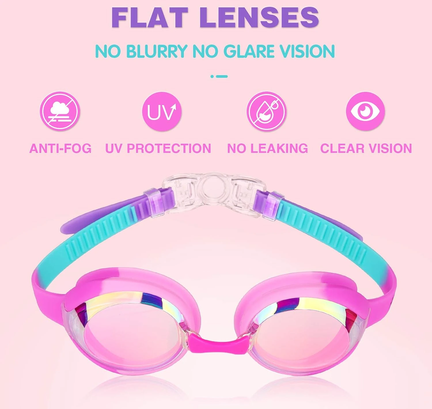 Keary swim goggles designed for kids with anti-fog and UV protection. Waterproof mirror lens provides clear vision underwater. Adjustable strap and nose pieces for a secure, comfortable fit. Durable and lightweight, perfect for pools and outdoor swimming.