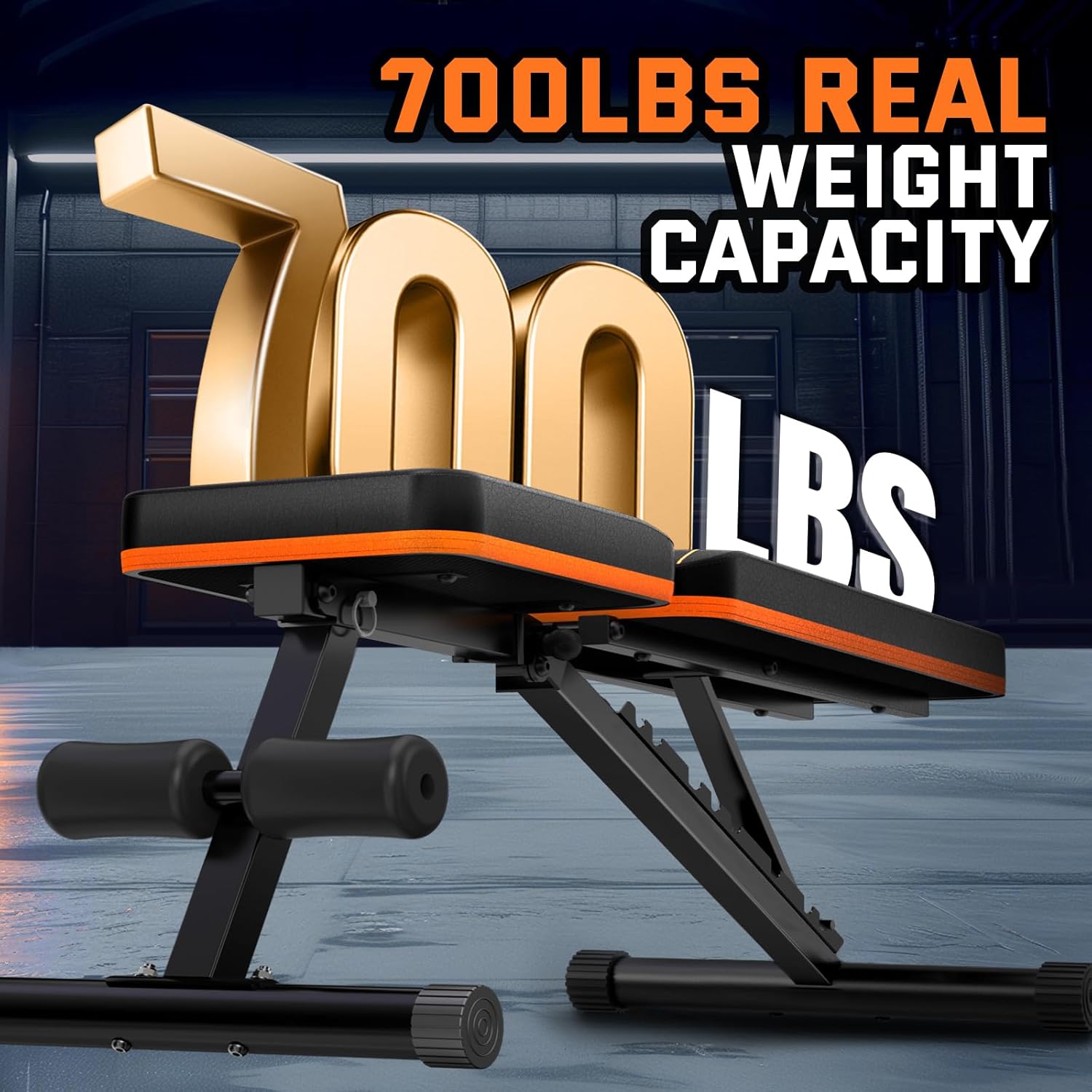 The Lusper 700LB Adjustable Weight Bench offers versatile exercises, from bench press to sit-ups. Its foldable design ensures easy storage, and the durable construction supports a wide range of workouts for strength and conditioning. Perfect for home gym setups.
